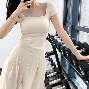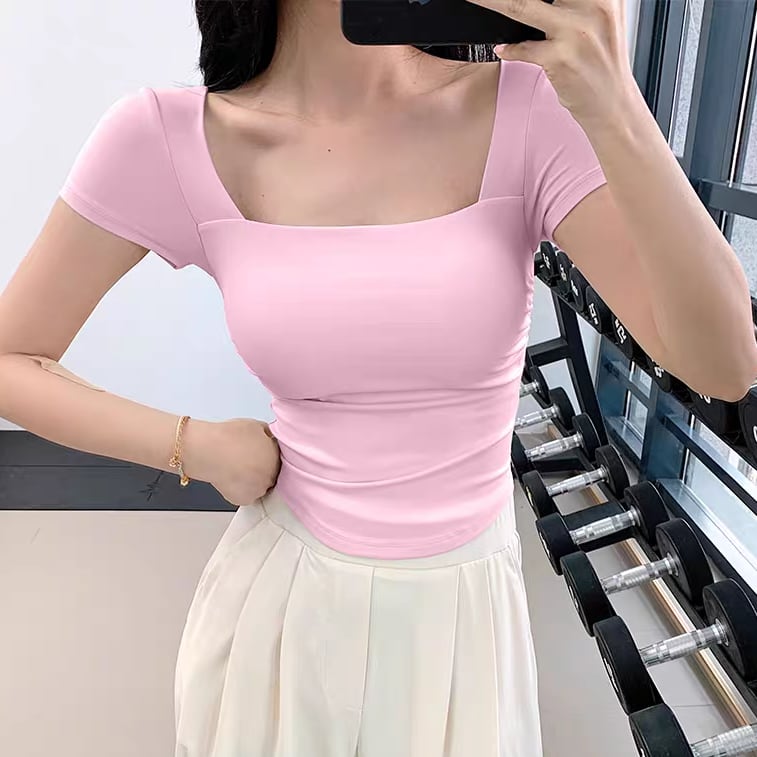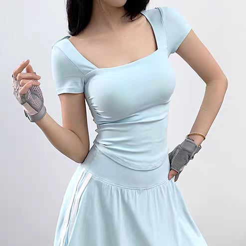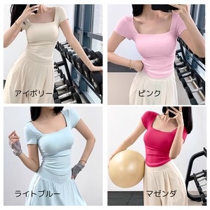 スクエアネックがデコルテをすっきり見せ、