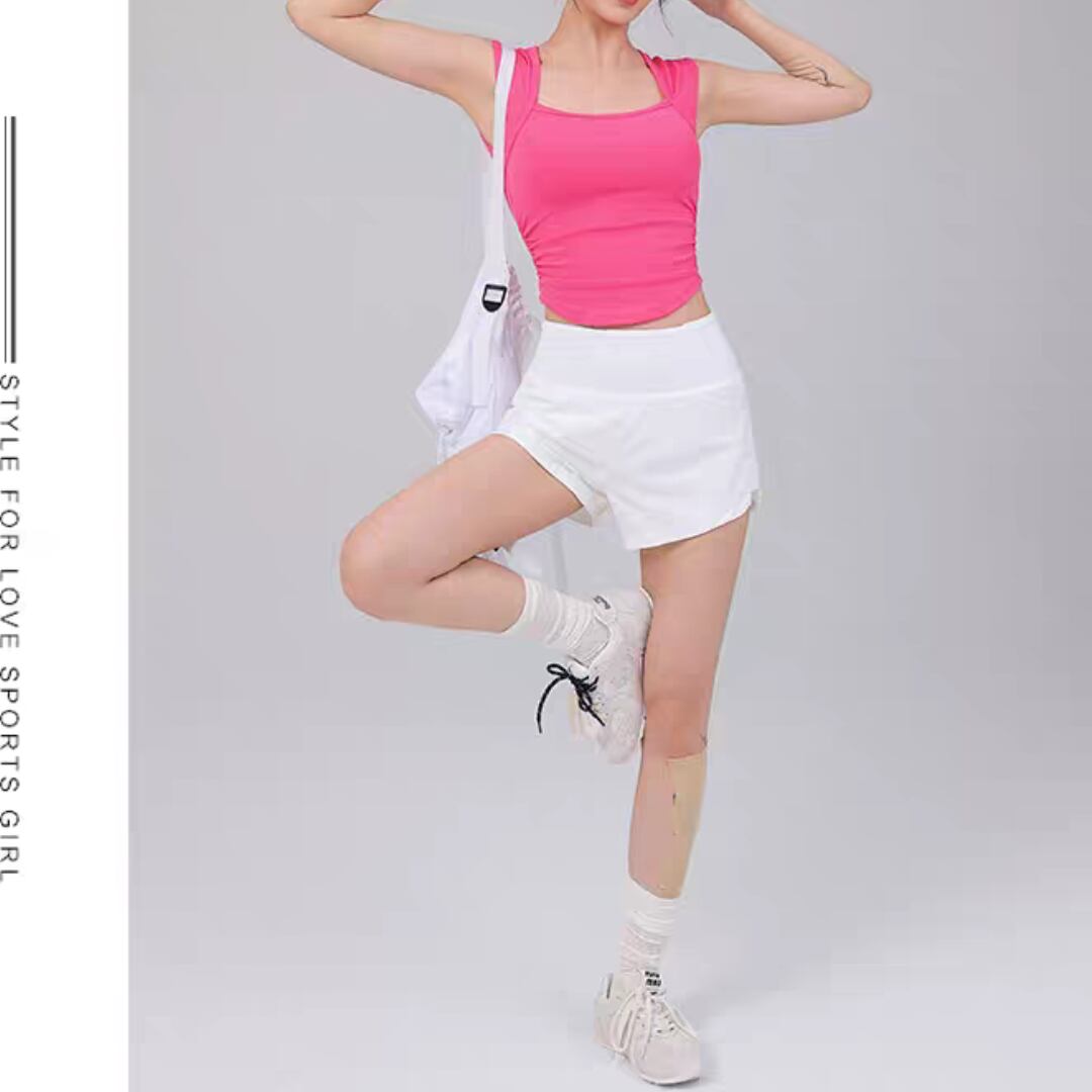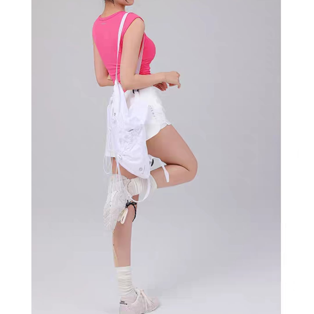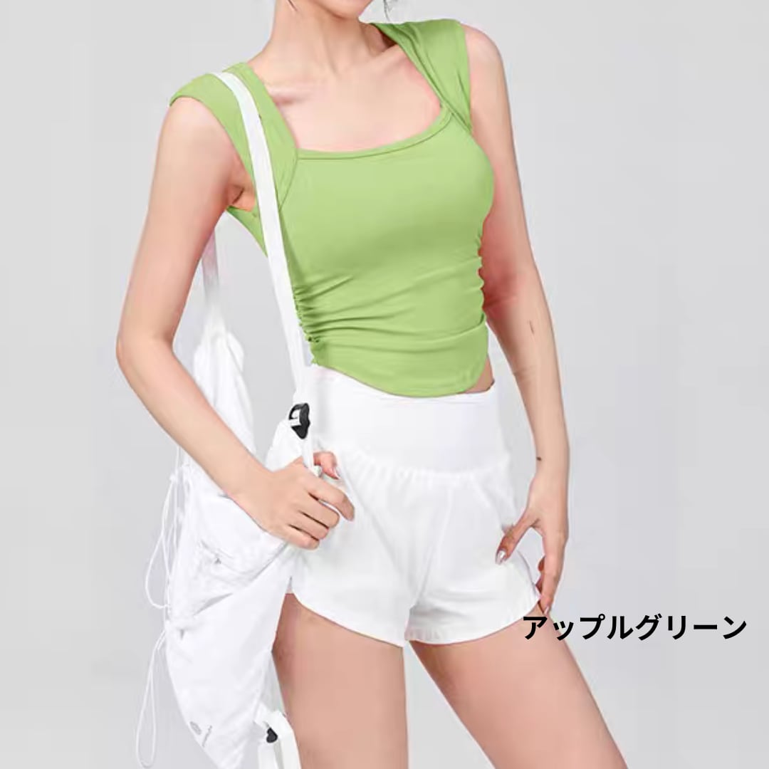広めの肩ストラップとスクエアネックで、スポーティーさと上品さを兼ね備えたデザイン。