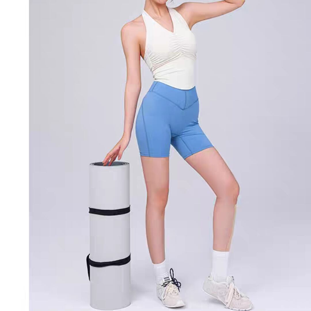 体のラインをすっきり見せるハイウエストショートレギンス。