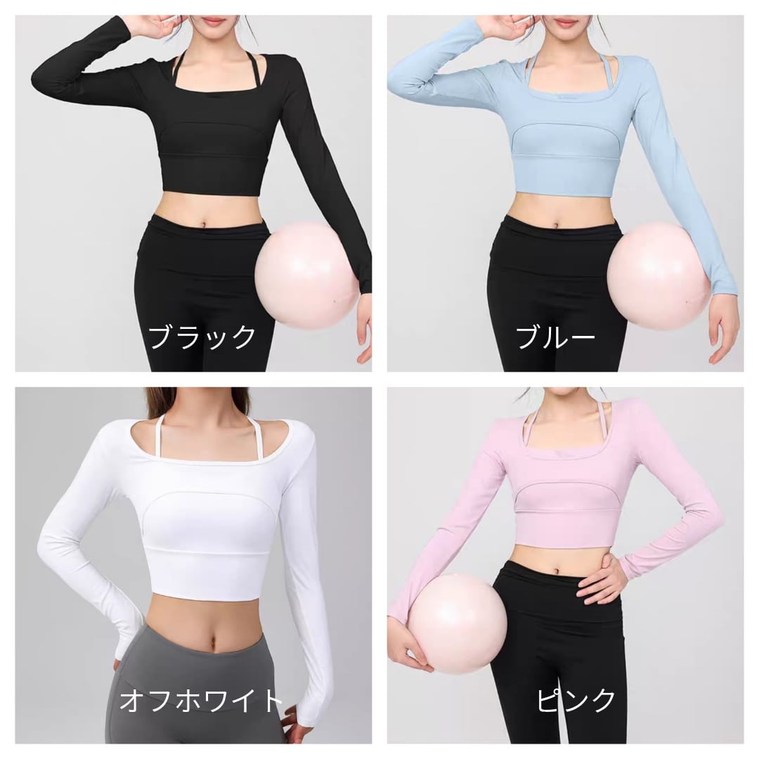 スクエアネック クロップド ヨガトップス