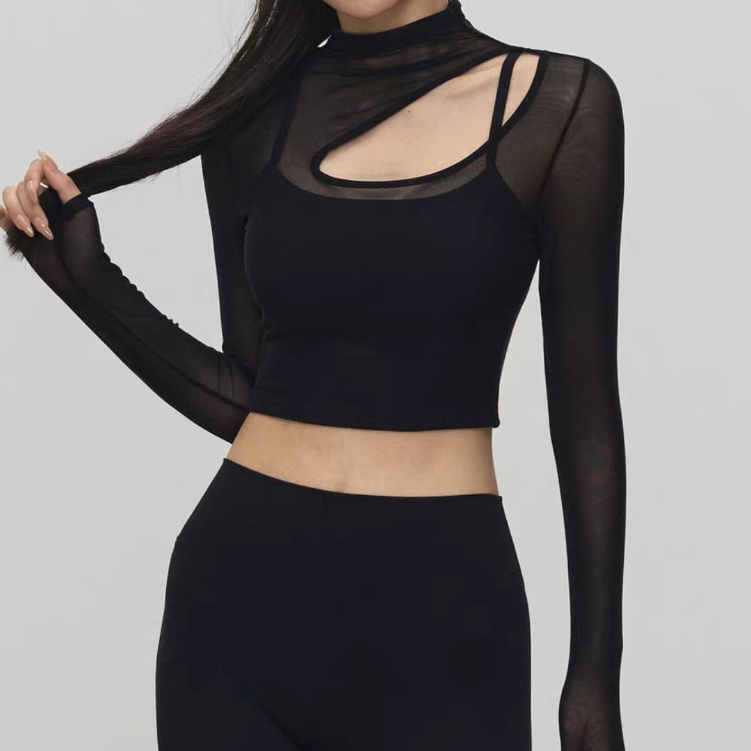 シアーメッシュ ハイネック クロップドトップス