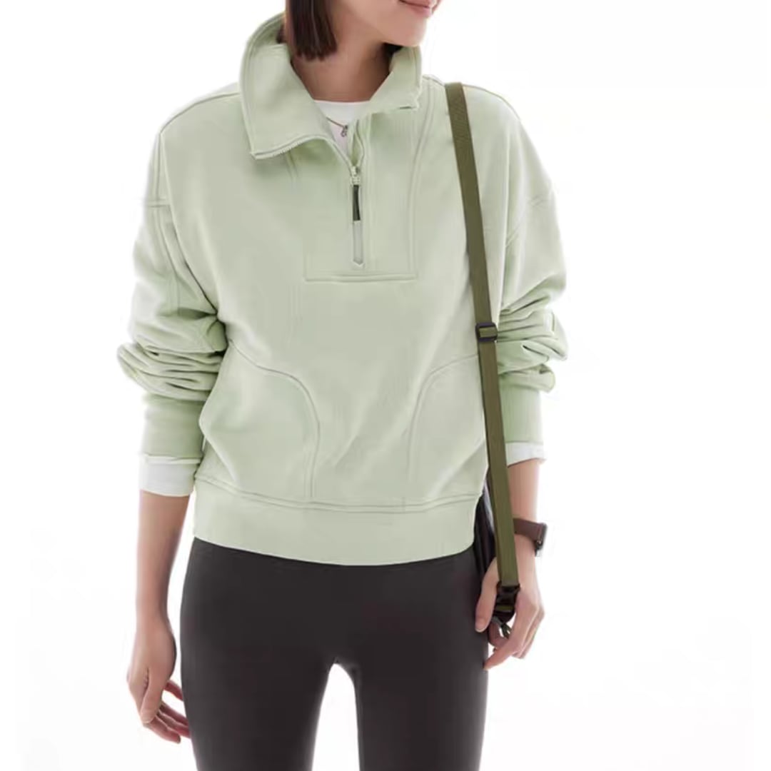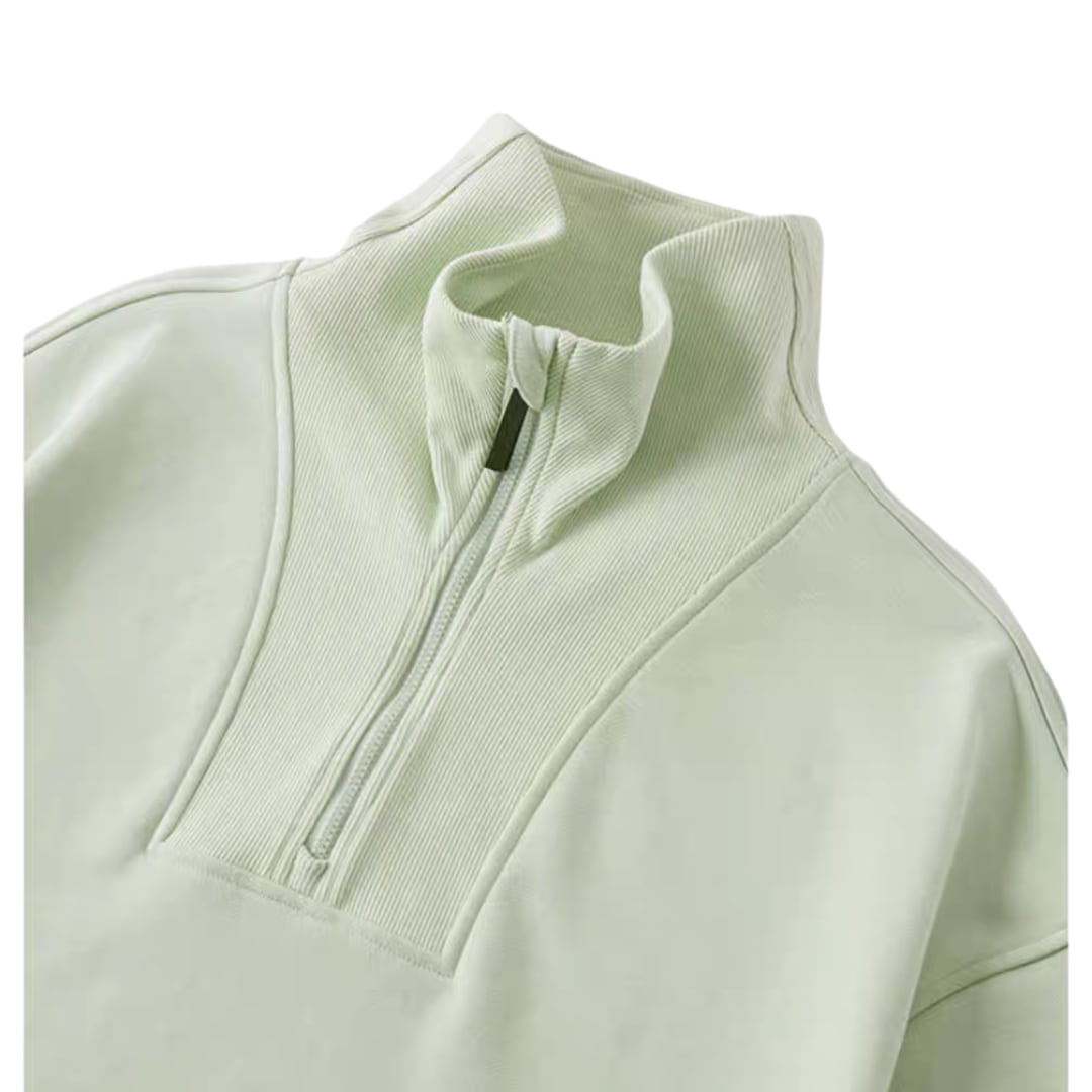 軽やかで柔らかな風合いが魅力のハーフジップスウェット。