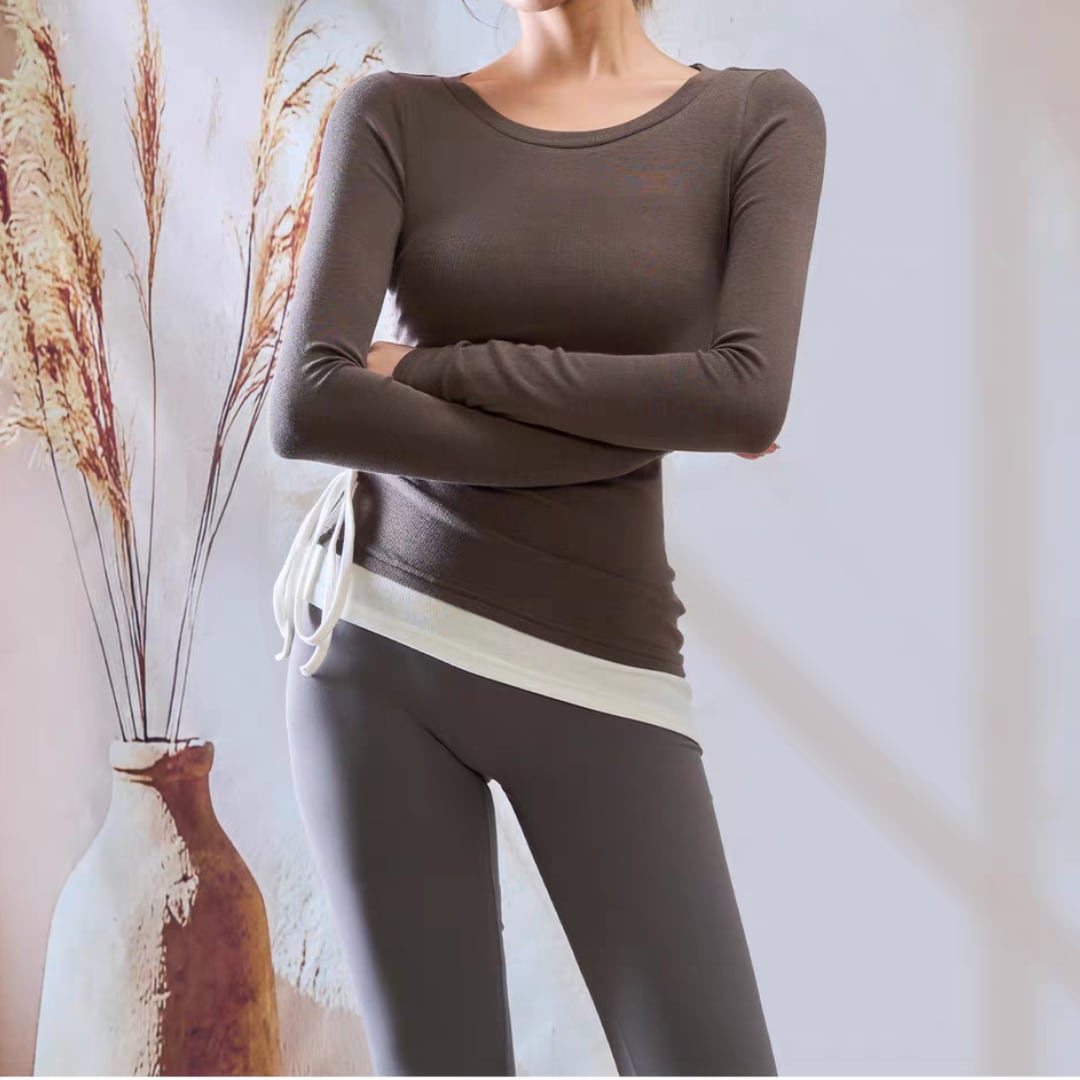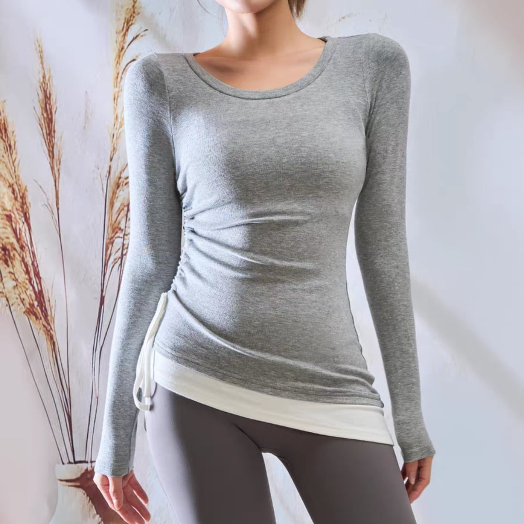 ボディラインを美しく魅せる、しなやかなフィット感のロングスリーブトップス。