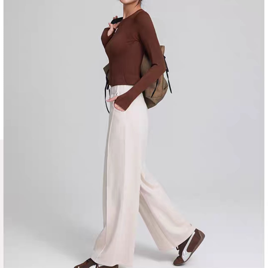 程よいストレッチ性のあるスパンデックス混素材で、ヨガ・ストレッチ・リラックスタイムにも快適。