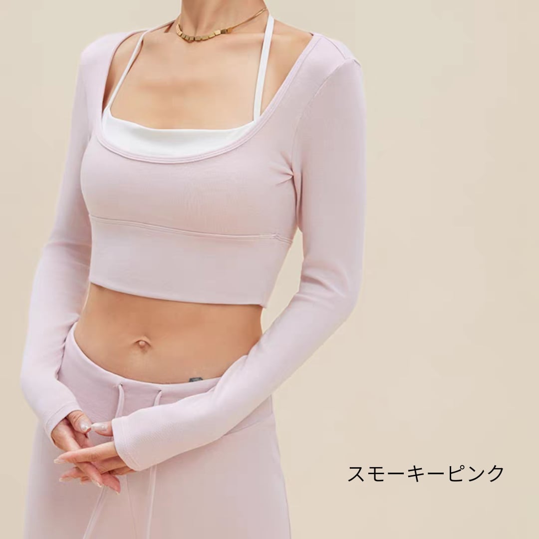 ヨガスタジオからカフェまで、そのまま出かけたくなる1着です。