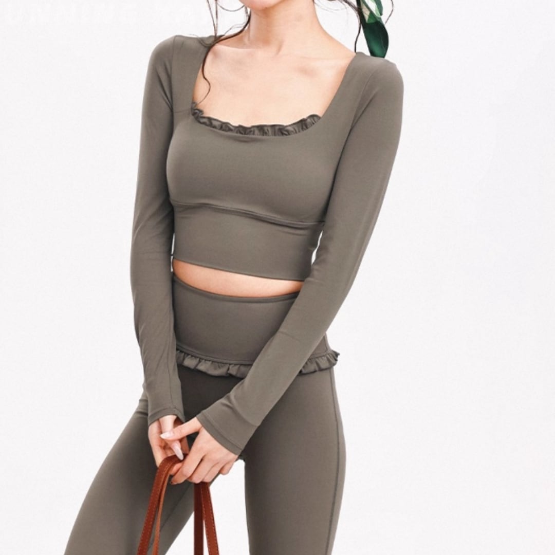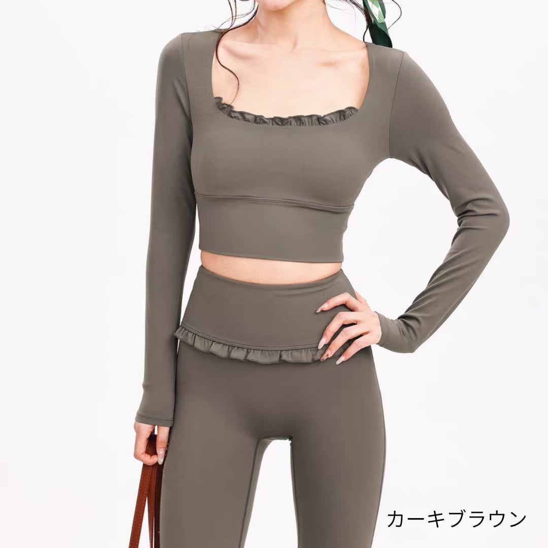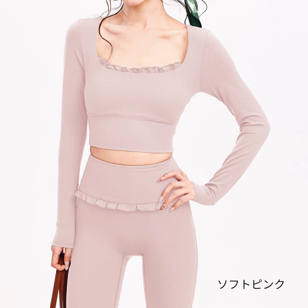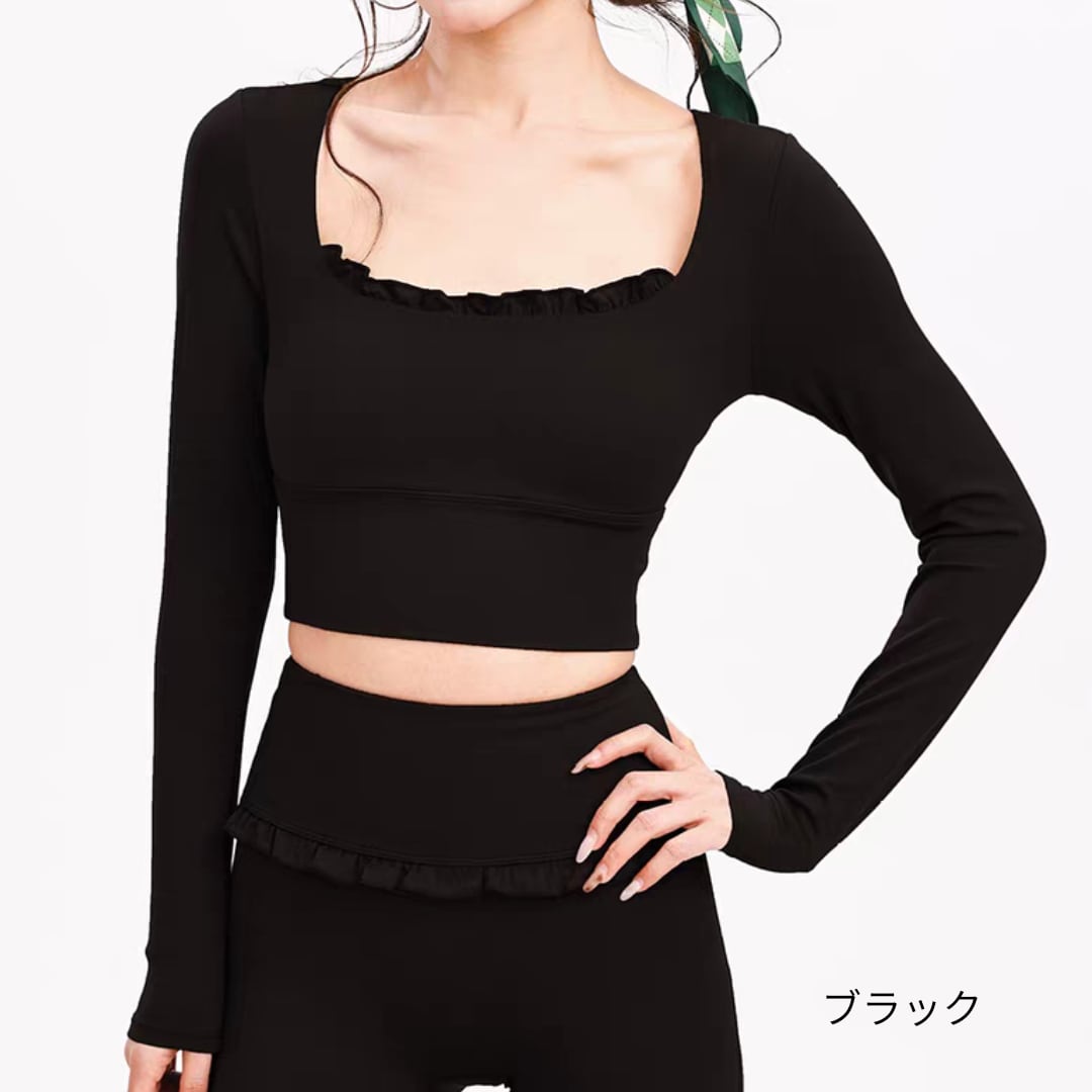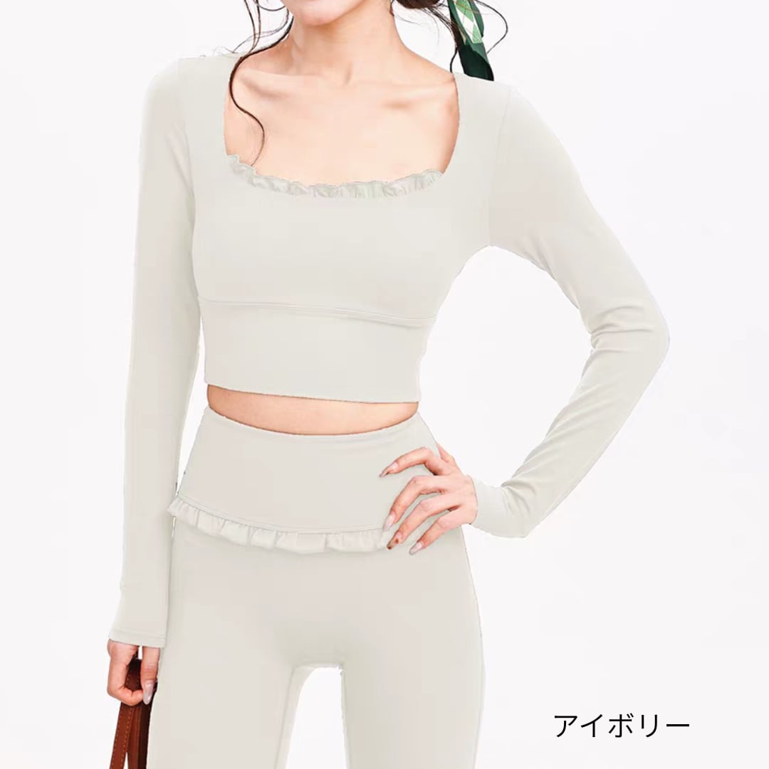 フリルデザインが印象的なロングスリーブトップス。