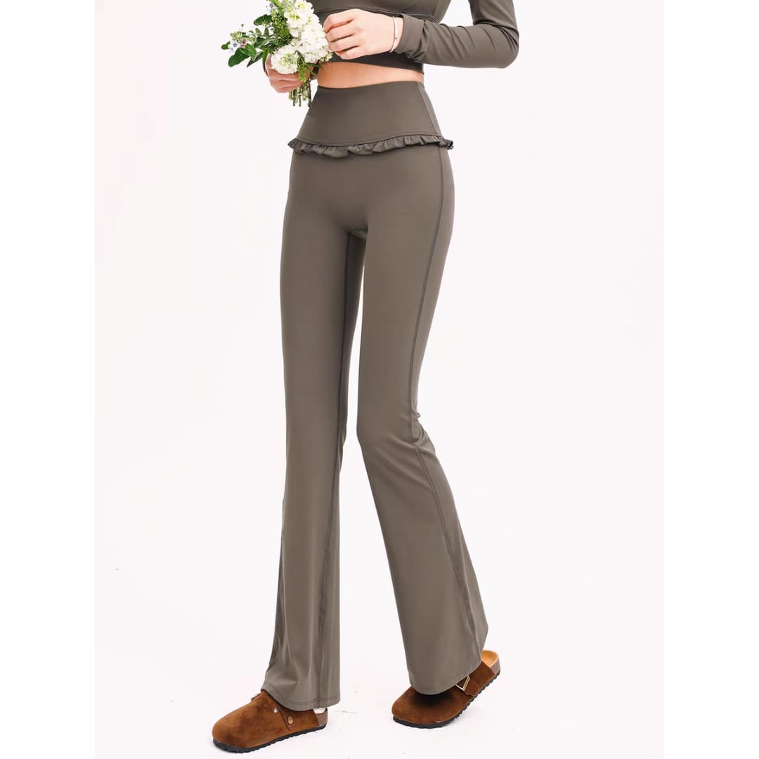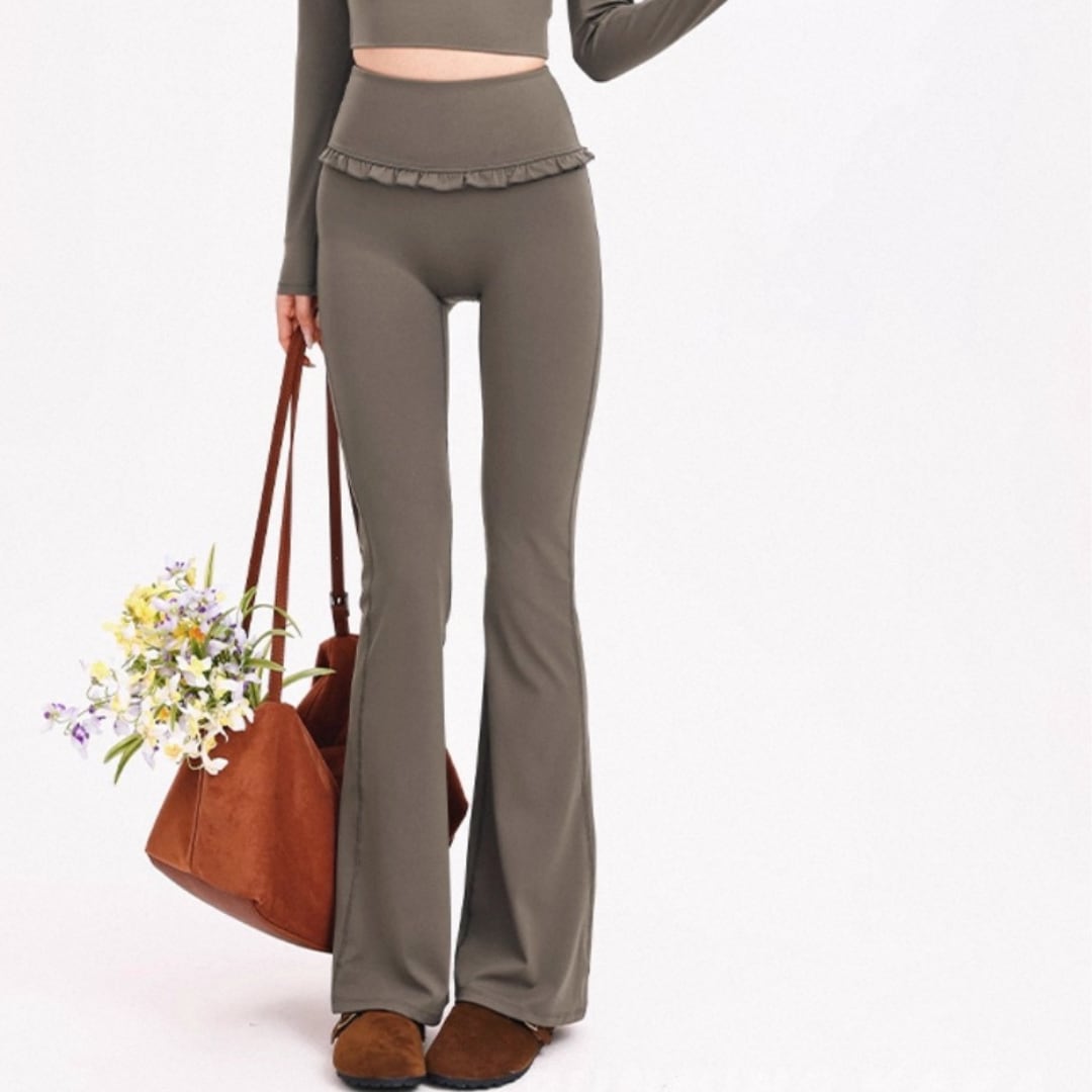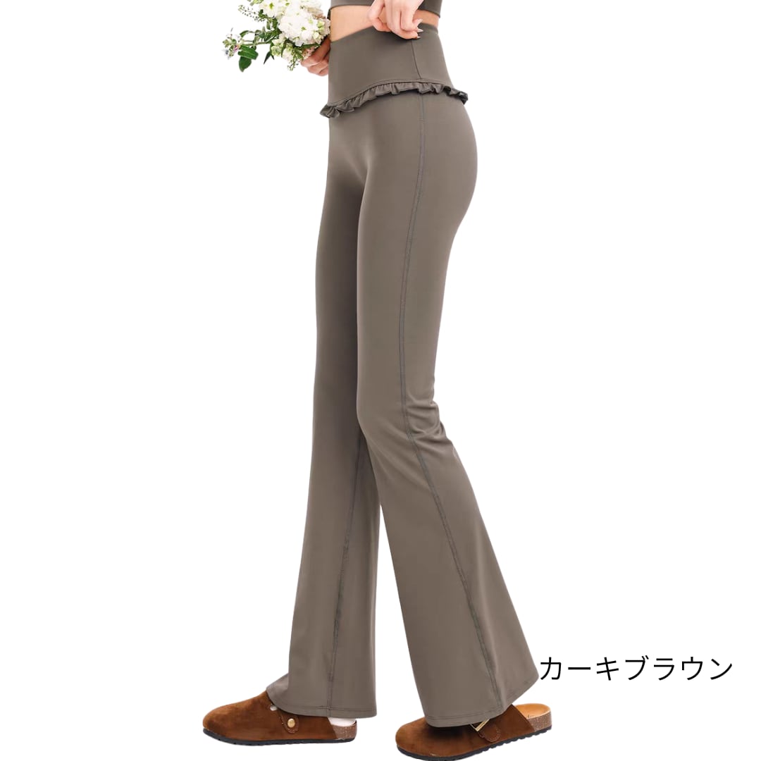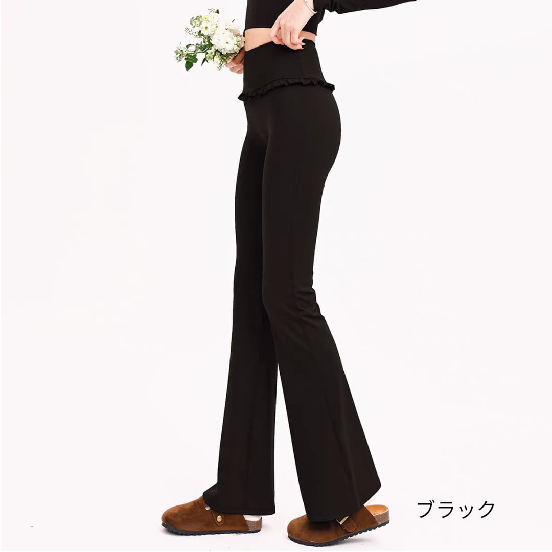 フリルウエストデザインのフレアレギンス。