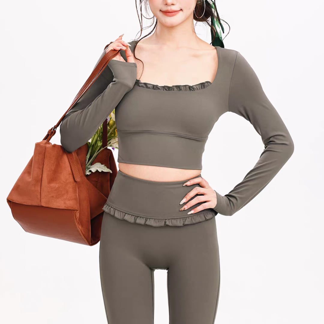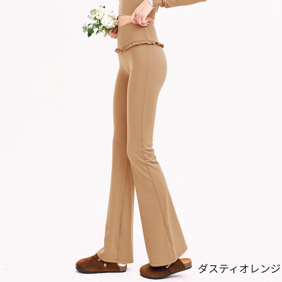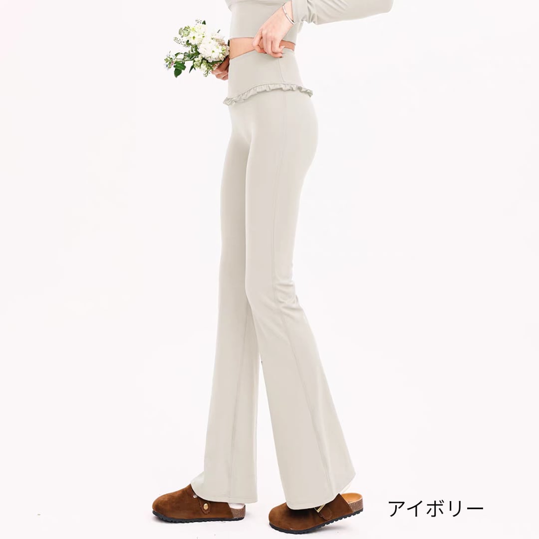 レギンスはウエストフリルで腰回りをやさしくカバーし、