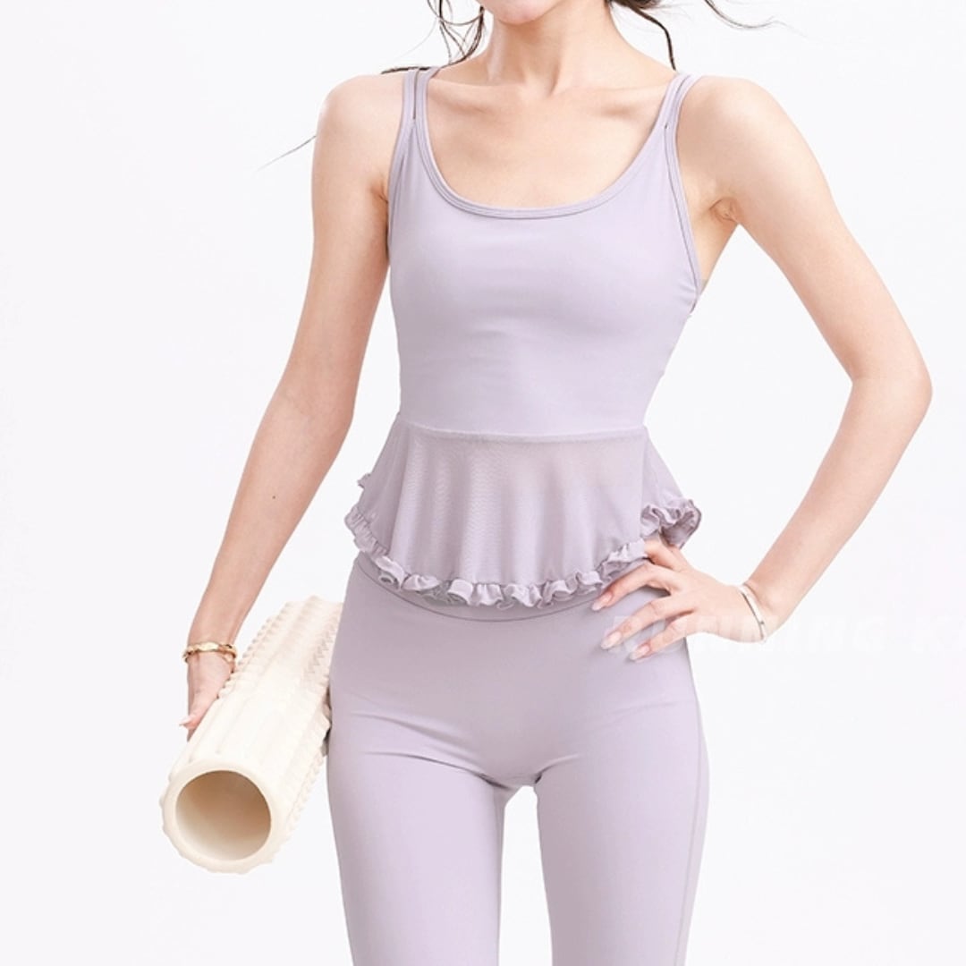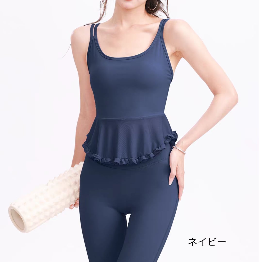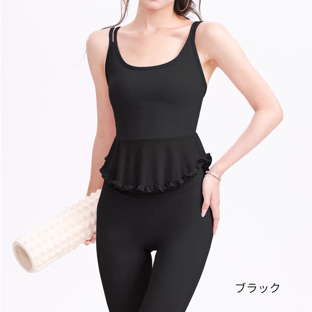 フリルペプラムデザインのキャミトップス。
