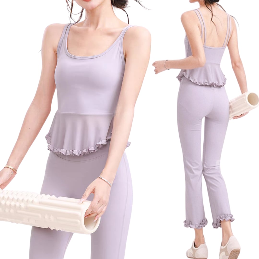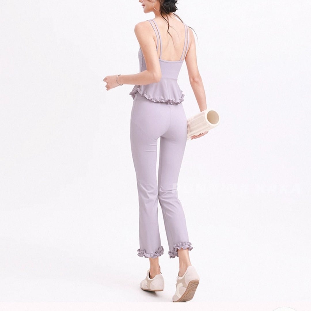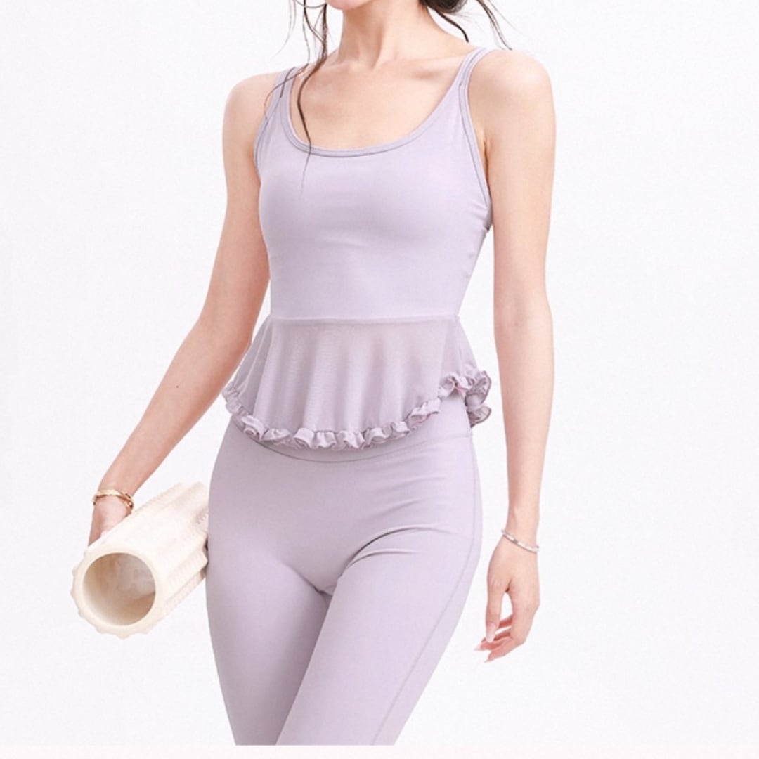 フリルペプラムデザインのキャミトップス。