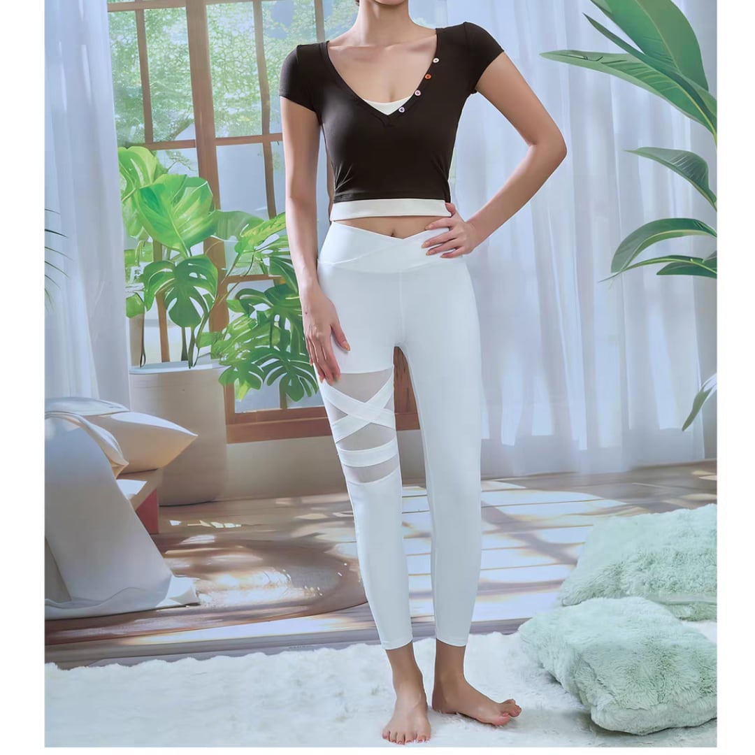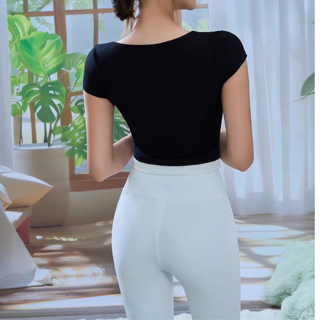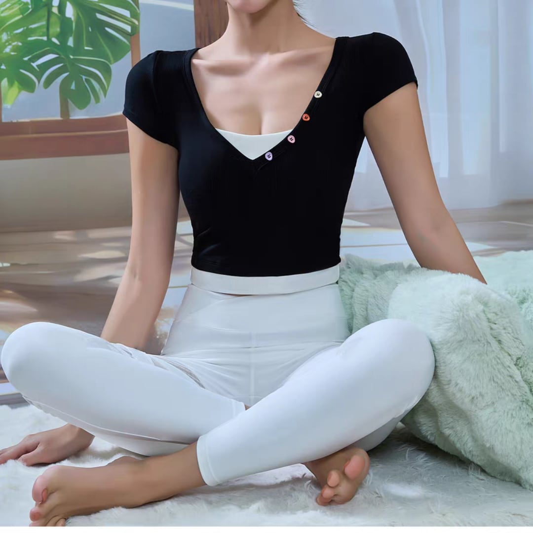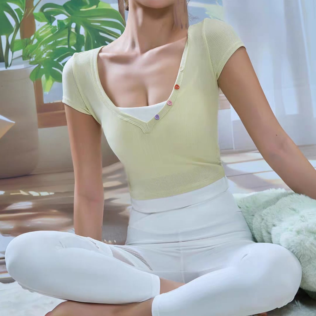リブVネック フィットヨガトップス
